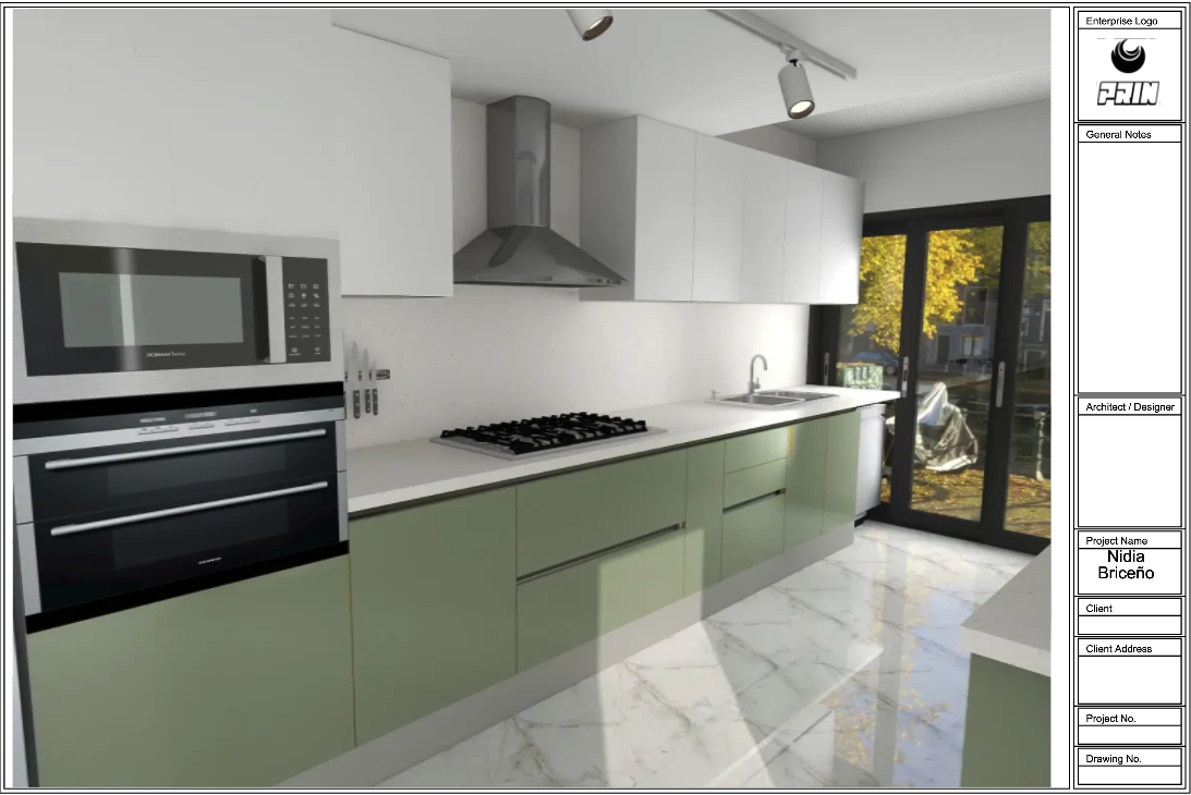 Levantamos un ante - proyecto según las necesidades. Visualizamos junto al cliente el proyecto en 2D y 3D renderizado (Imagen Fotorealista)