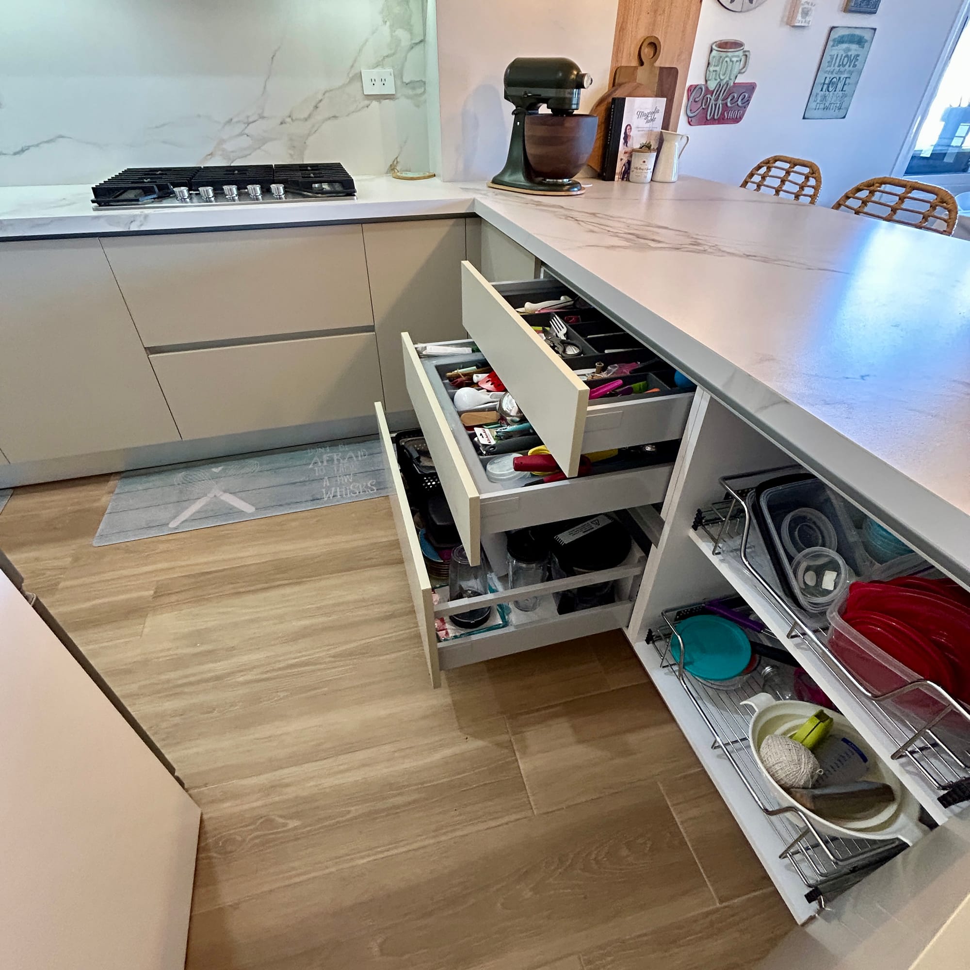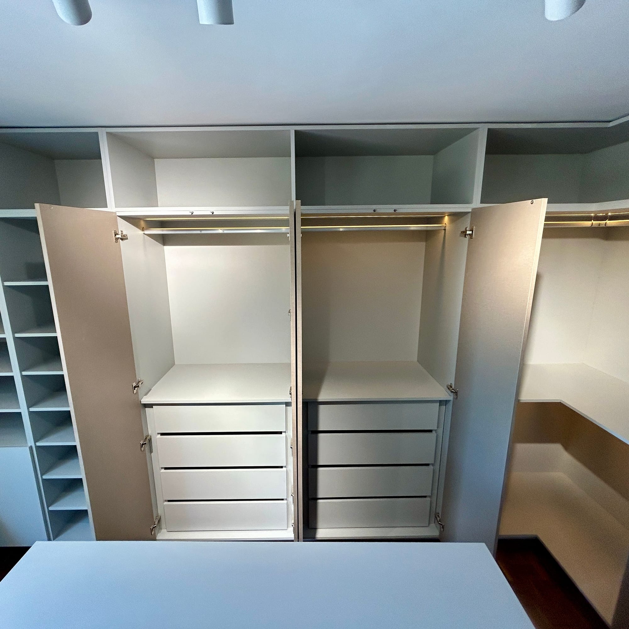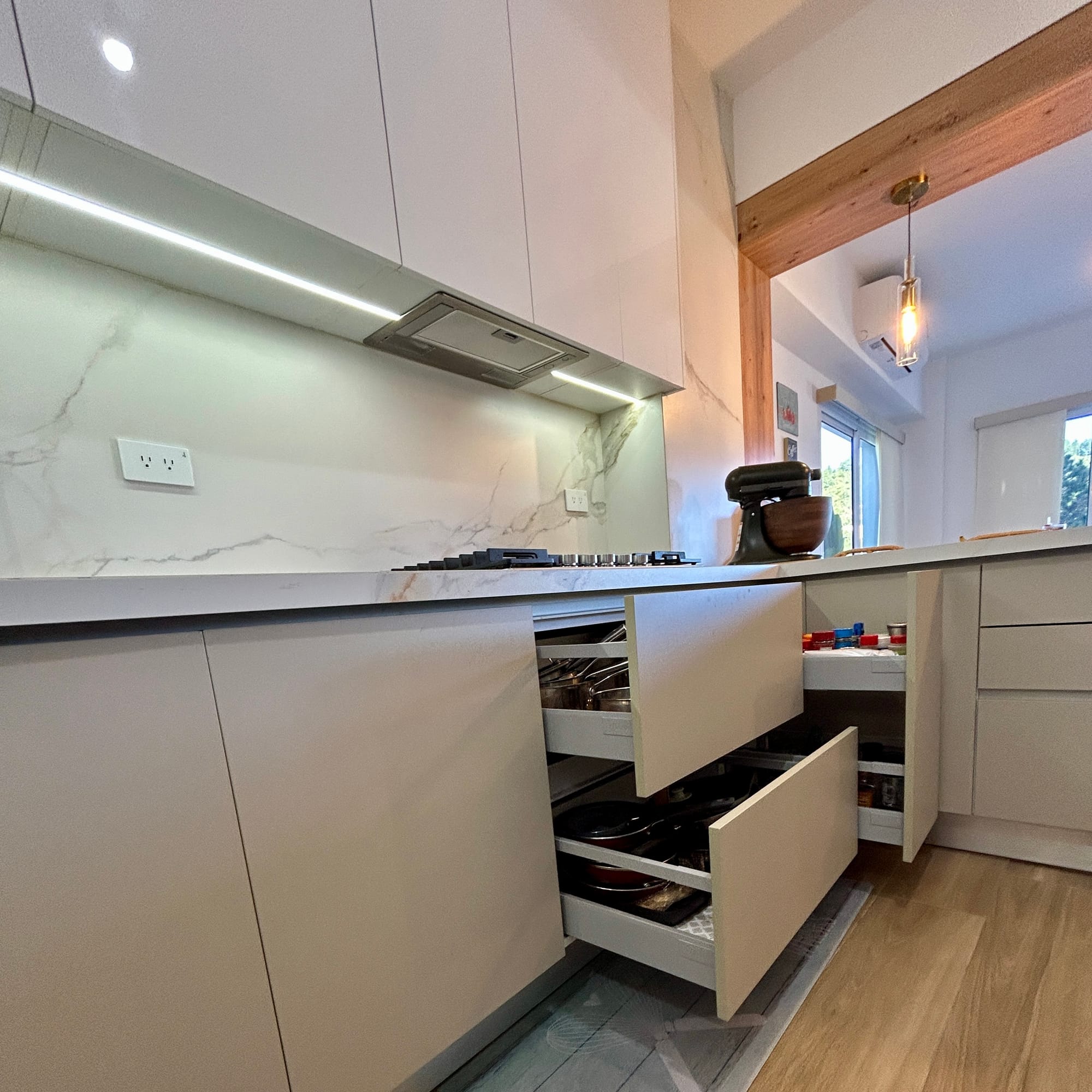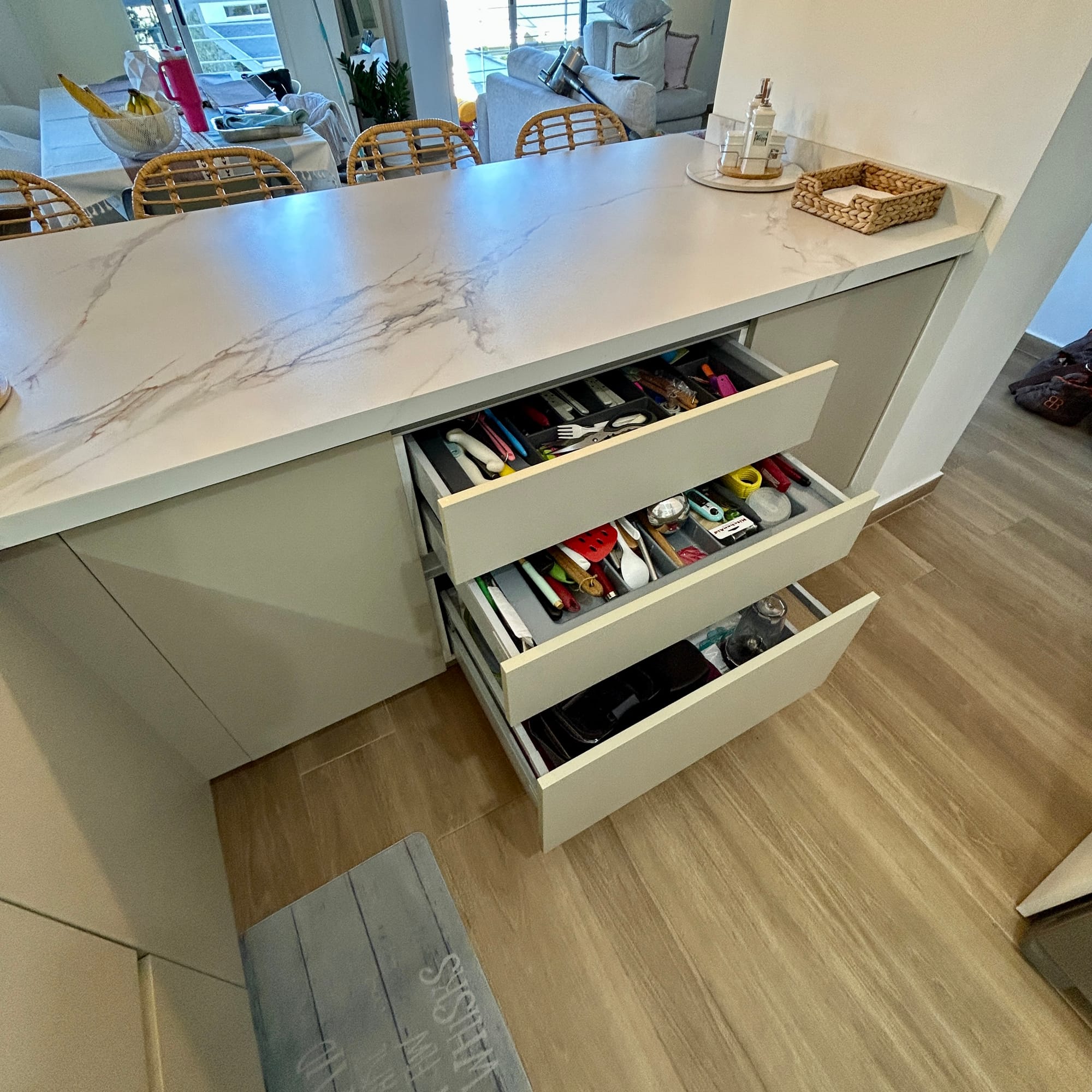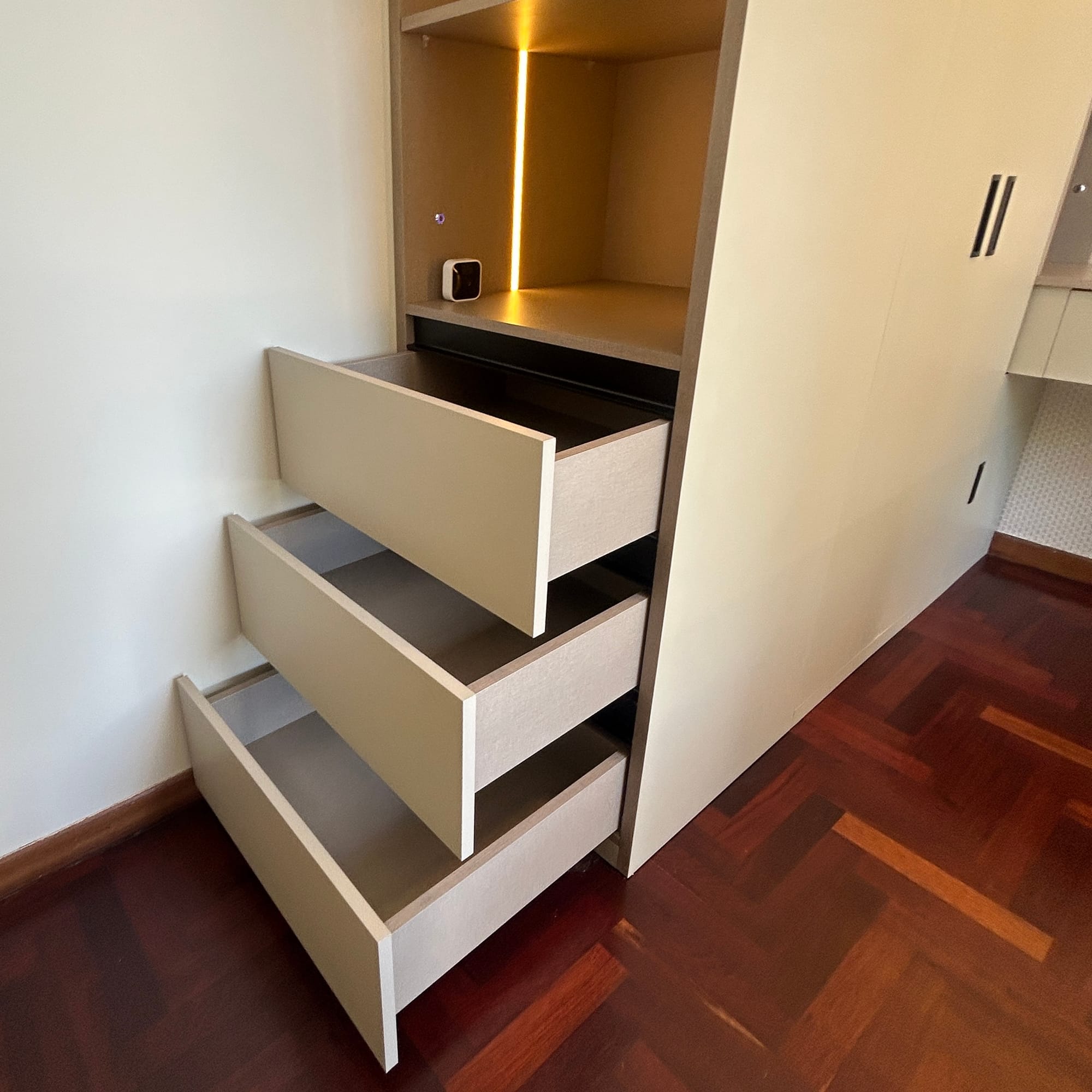 Nos encargamos de Diseñar, fabricar e Instalar Mobiliario de Cocina, Closet y Vestier, Baños, Centro de Entretenimiento de Tv, Bibliotecas, sofas, camas, etc. Usando los materiales y herrajes de mayor calidad del mercado